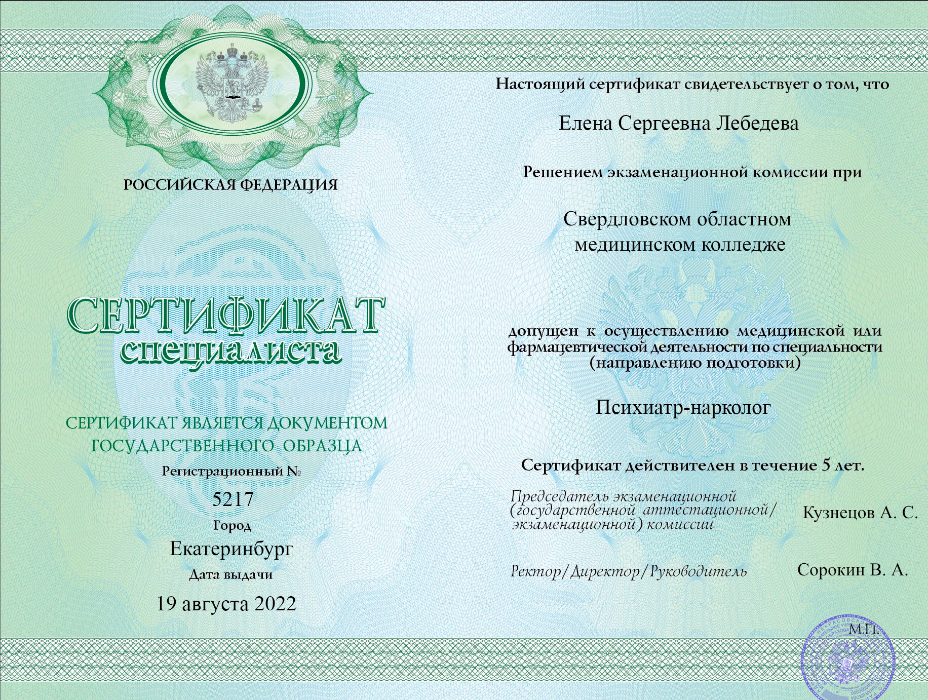 Елена Сергеевна Лебедева врач нарколог клиники доктора Стукаловой в Пятигорске